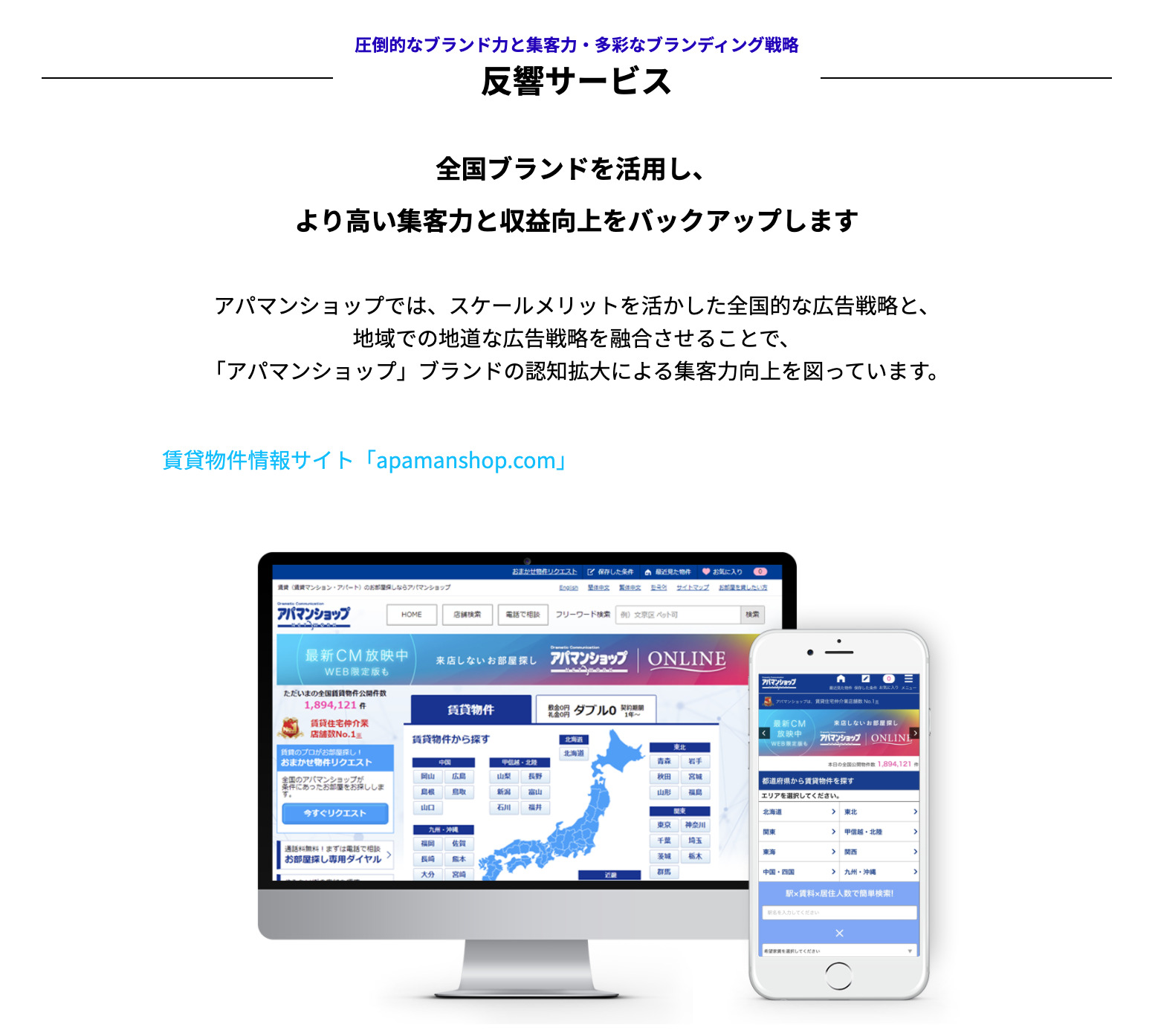 アパマンショップは全国約1,050社が加盟する不動産賃貸仲介フランチャイズです。
