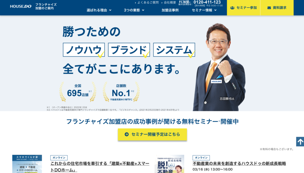 | フランチャイズ | SUMiTAS ![]() ![]() | ハウスドゥ ![]() ![]() | ONE TOP HOUSE![]() ![]() | KEIAI![]() ![]() |
