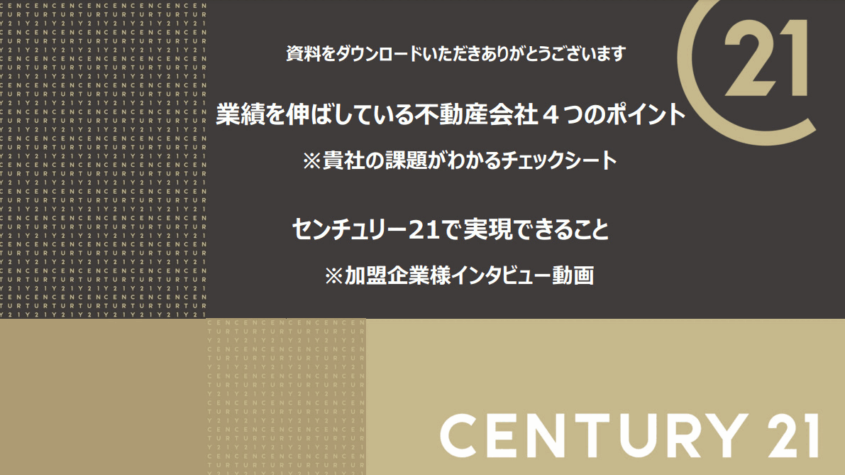 ※センチュリー21はエリアで加盟制限がございます。ご興味ありましたらお早めに資料ダウンロードください。